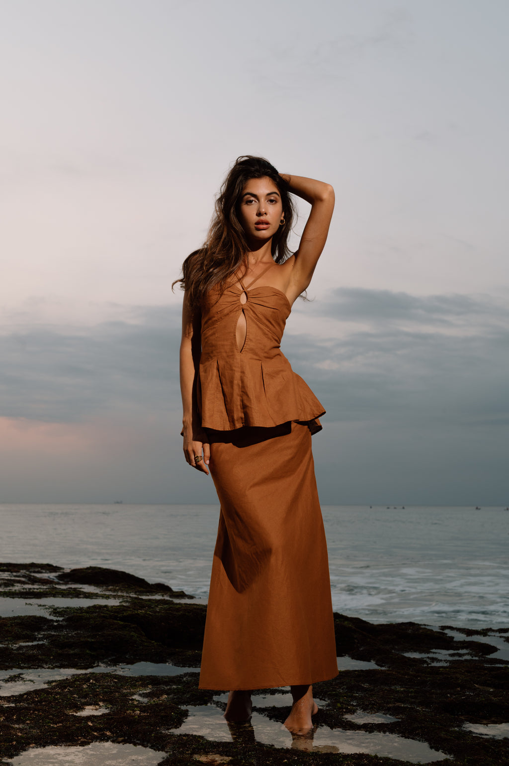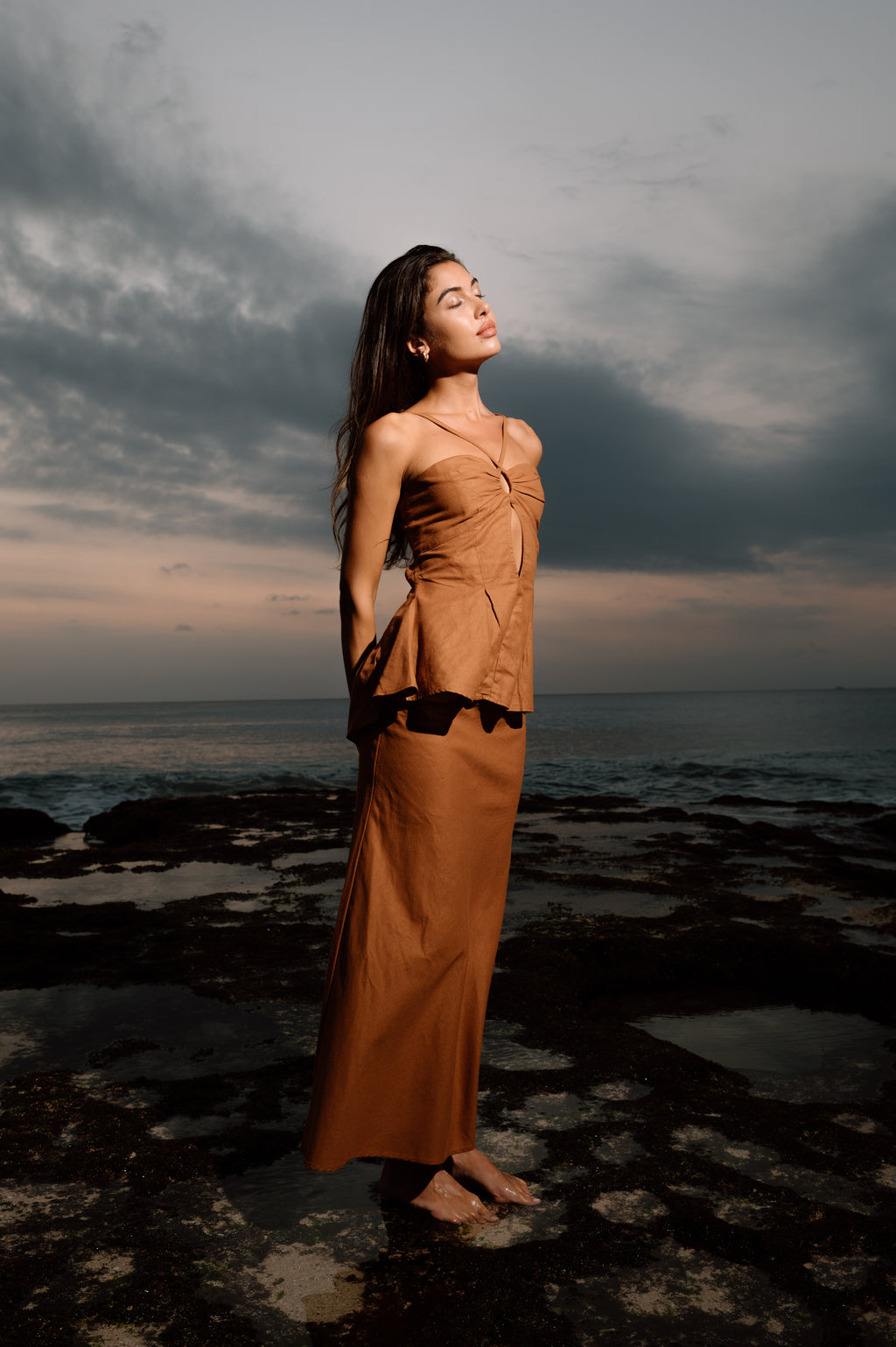 A streamlined skirt that falls to the ankles in a straight silhouette. Designed with modern clarity, it carries quiet sophistication whether styled casually or elevated for refined occasions.